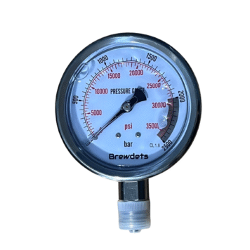 This 4 inch diameter Pressure Gauge is designed for high pressure measurements up to 2500 BAR, ideal for heavy industrial applications such as hydraulics, drilling, and other high pressure systems. With a 1/2″ NPT (Male) threaded connection, this tool is compatible with a variety of standard pipe systems and pressure installations.